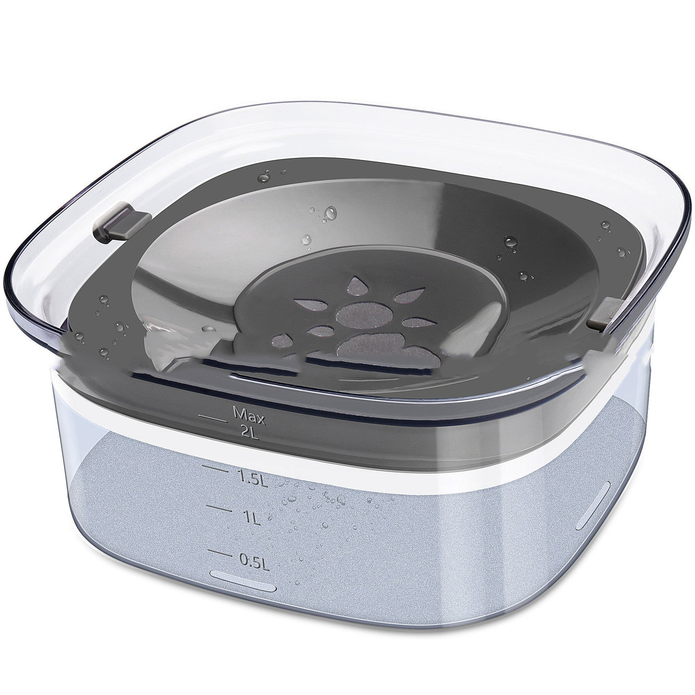 Keep your furry friends hydrated with a clear, 70oz / 2L large-capacity dog and cat water bowl that stays neat, clean, and easy to monitor. Its transparent body lets you see water levels at a glance, so refills are quick and effortless, day after day.