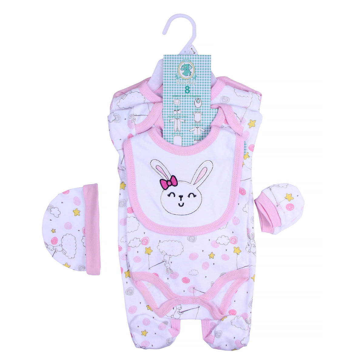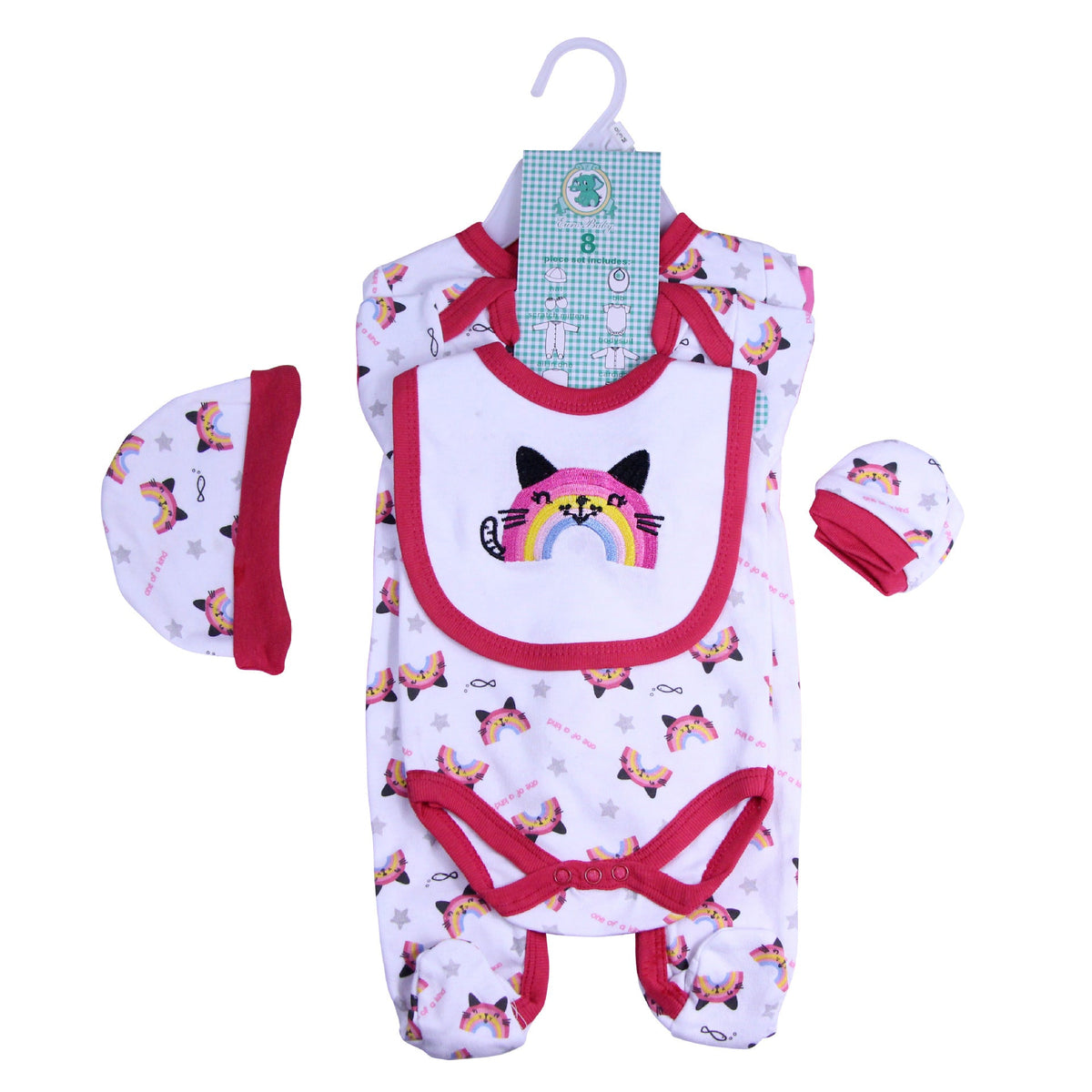 Long-sleeved crawler +short-sleeved harness + long-sleeved cardigan + leggings+ gloves+ bib+Hat * 6sets(