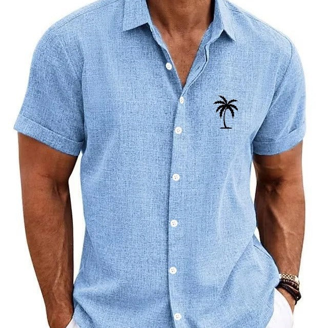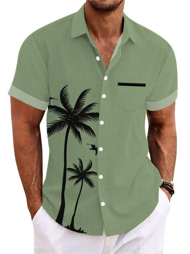 Bamboo Linen Men's Clothing Shirt 3D Printed Casual Short Sleeve
