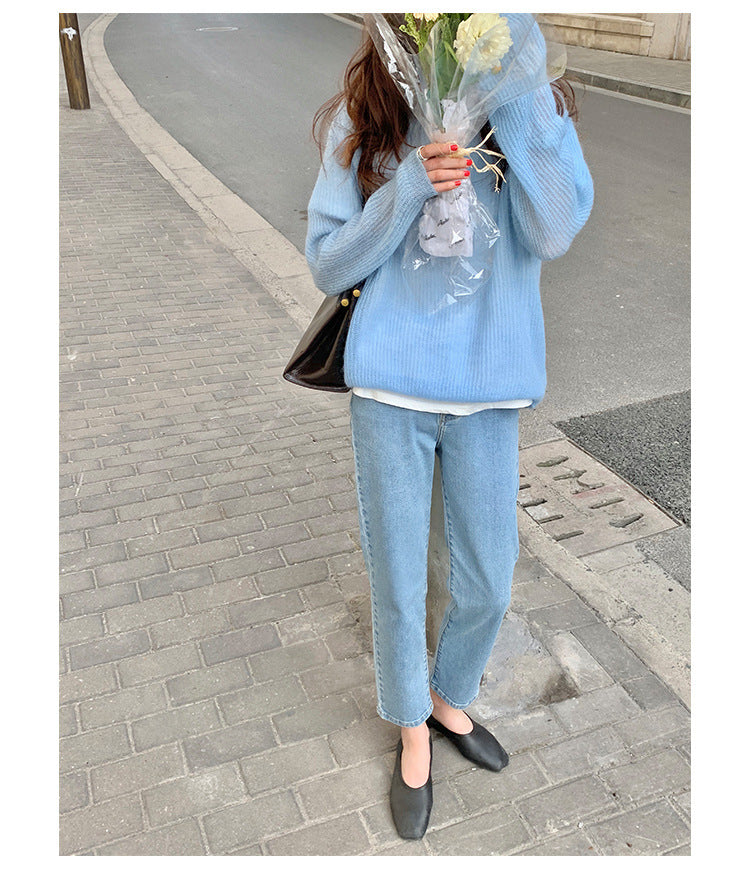 Bleached Washed High Waist Slim Straight Capris Jeans