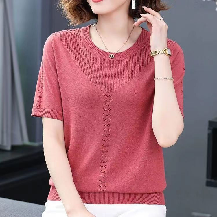The breathable ice-silk fabric helps keep you cool during hot days, while the hollow-out design enhances airflow for all-day comfort. Its simple, pullover construction makes it easy to layer with cardigans or jackets, and the solid colors offer versatile styling for casual outings or relaxed office wear.