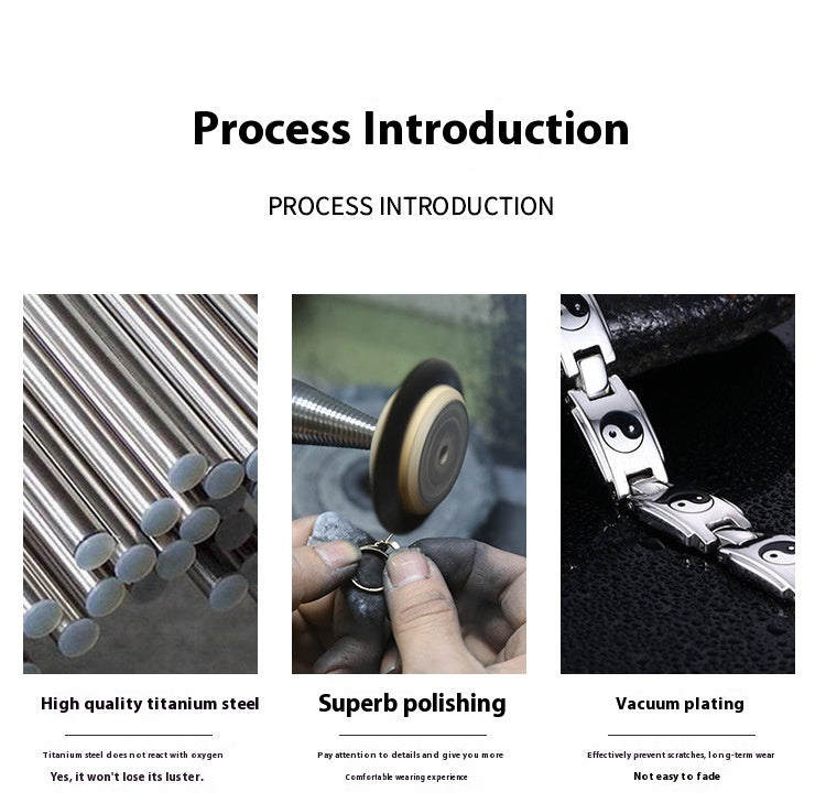 Discover modern masculine style with the Tai Chi Titanium Steel Bracelet Jewelry For Men. Designed for men who value clean lines and durable construction, this bracelet blends a geometric silhouette with a refined electroplated finish.