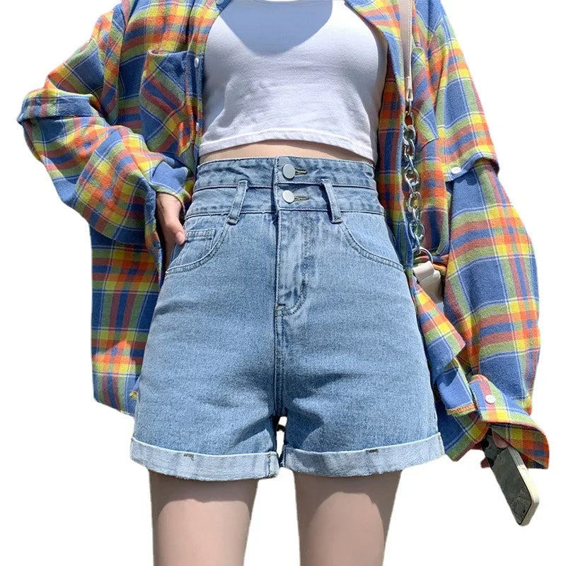 Meet the Women's Simple Double-button Denim Shorts—loose-fitting, high-waisted denim designed for effortless summer style. Ideal for everyday casual wear, these shorts pair with tees, tanks, and sandals for a ready-to-go look.