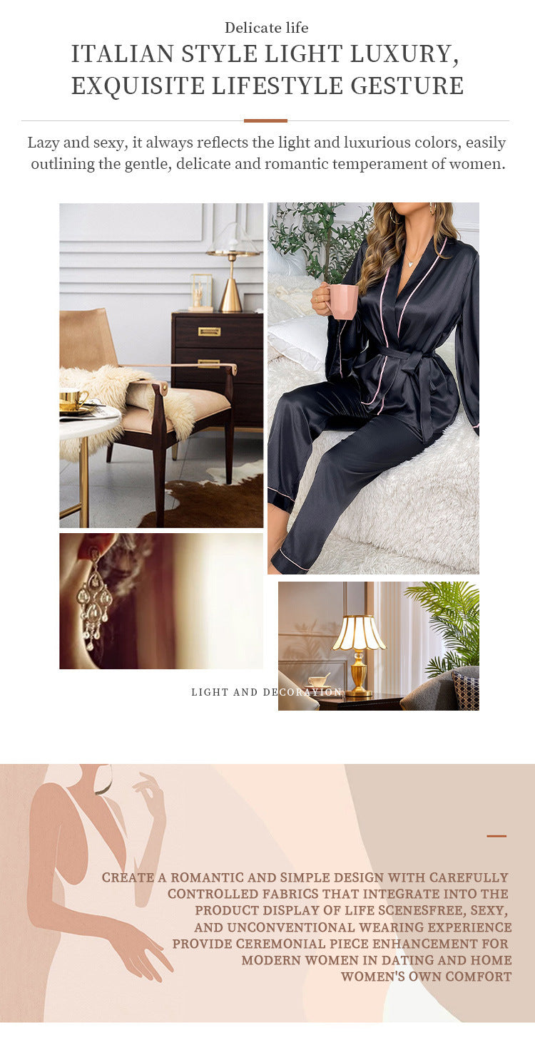 Women's Summer Thin Silk Ice Silk Satin Chiffon Long Sleeve Home Wear